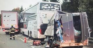 На автомагістралі D1 поблизу Їглави рейсовий автобус “Рахів – Прага” зіткнувся з вантажним автомобілем, є постраждалий.
