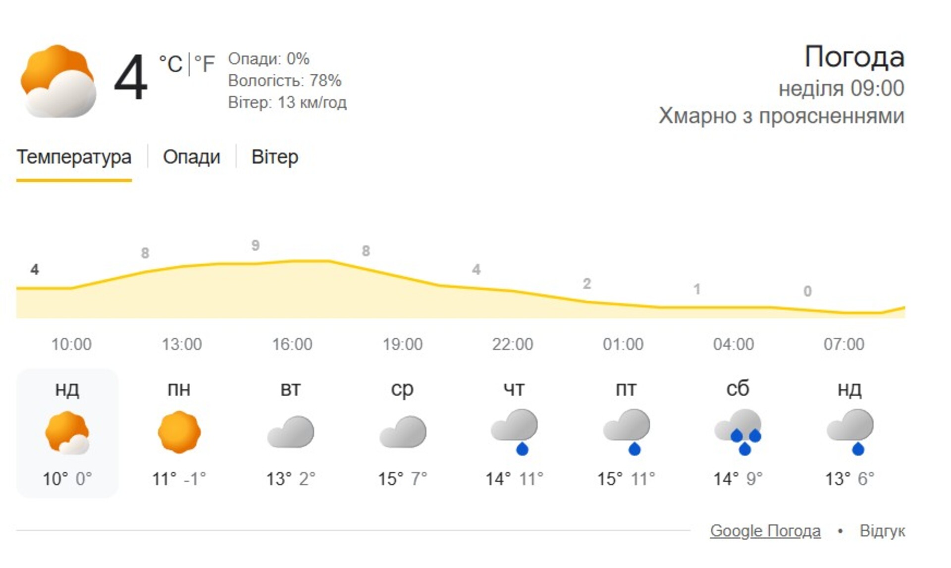 Вітер північно-західний 5-10 м/с. Температура повітря вночі 0-5° тепла, на високогір'ї до 3° морозу, вдень 6-11°, в горах місцями 1-6° тепла.