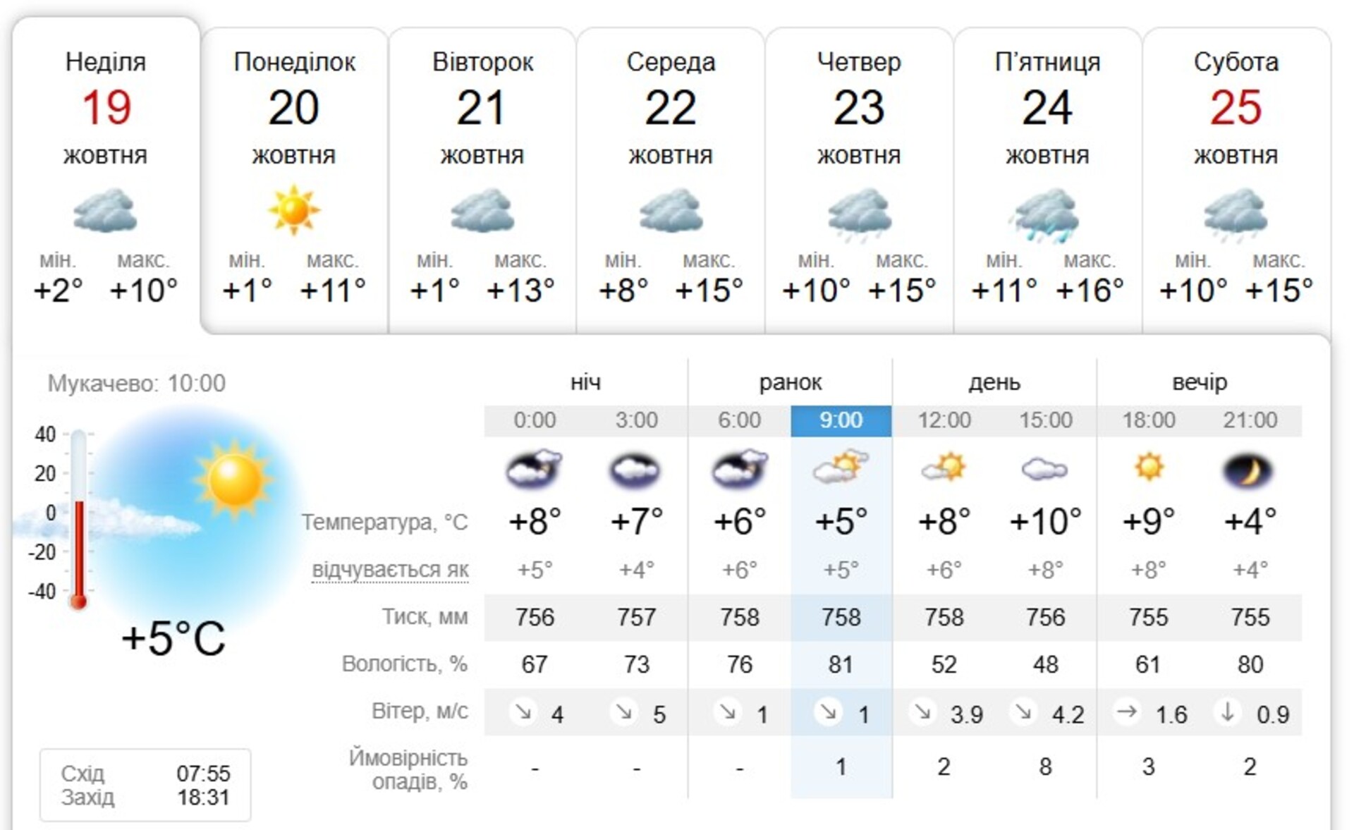 Вітер південно-східний 5-10 м/с. Температура повітря вночі 0-5°, на високогір'ї до 7° морозу, вдень 7-12°, в горах місцями 2-7° тепла.