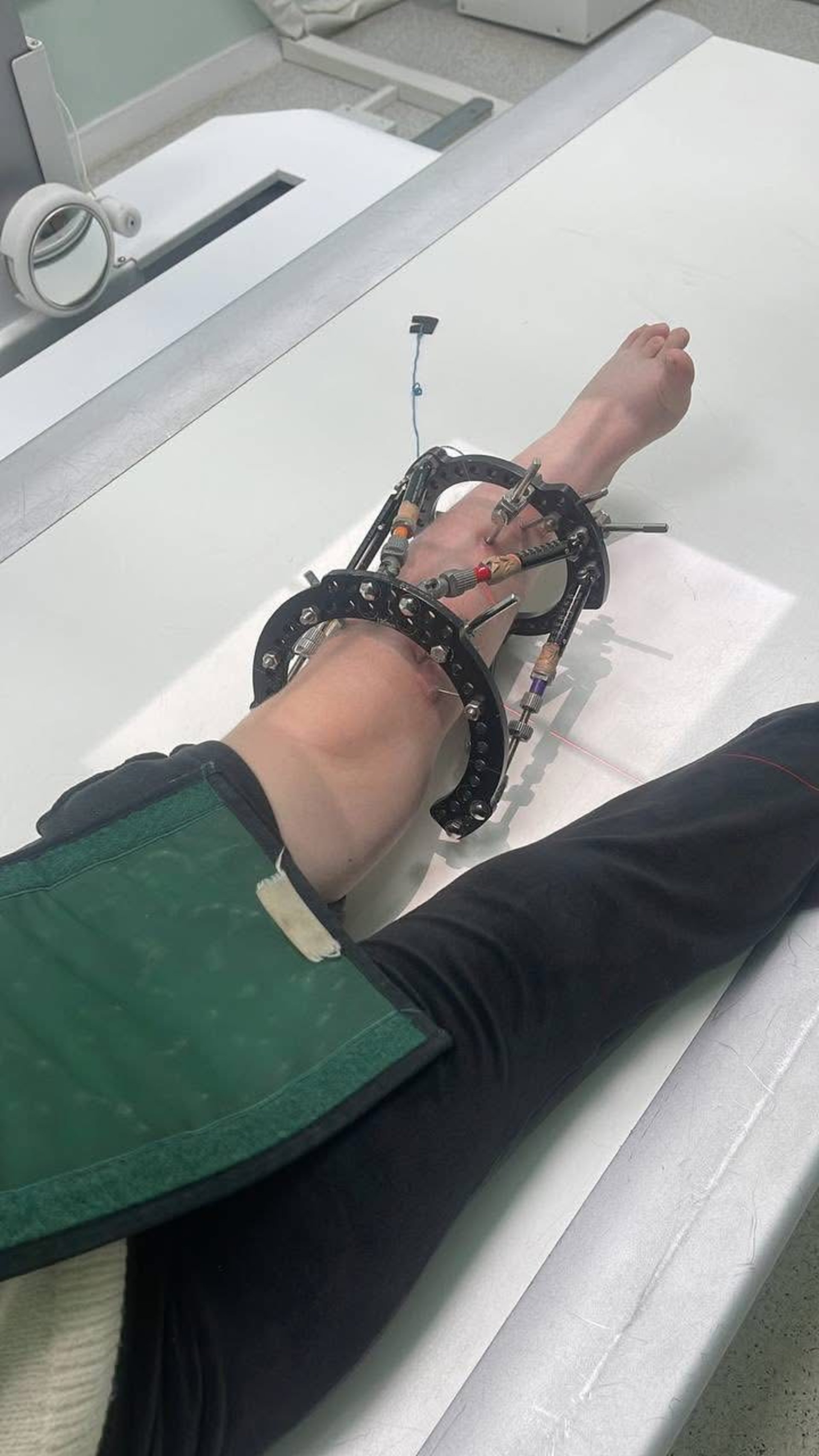 Як розповідають на сторінці медзакладу, 17 квітня 2025 року дитині виконали операцію з встановленням апарата зовнішньої фіксації за методом Ілізарова, що дало змогу здійснювати поступове подовження кінцівки.