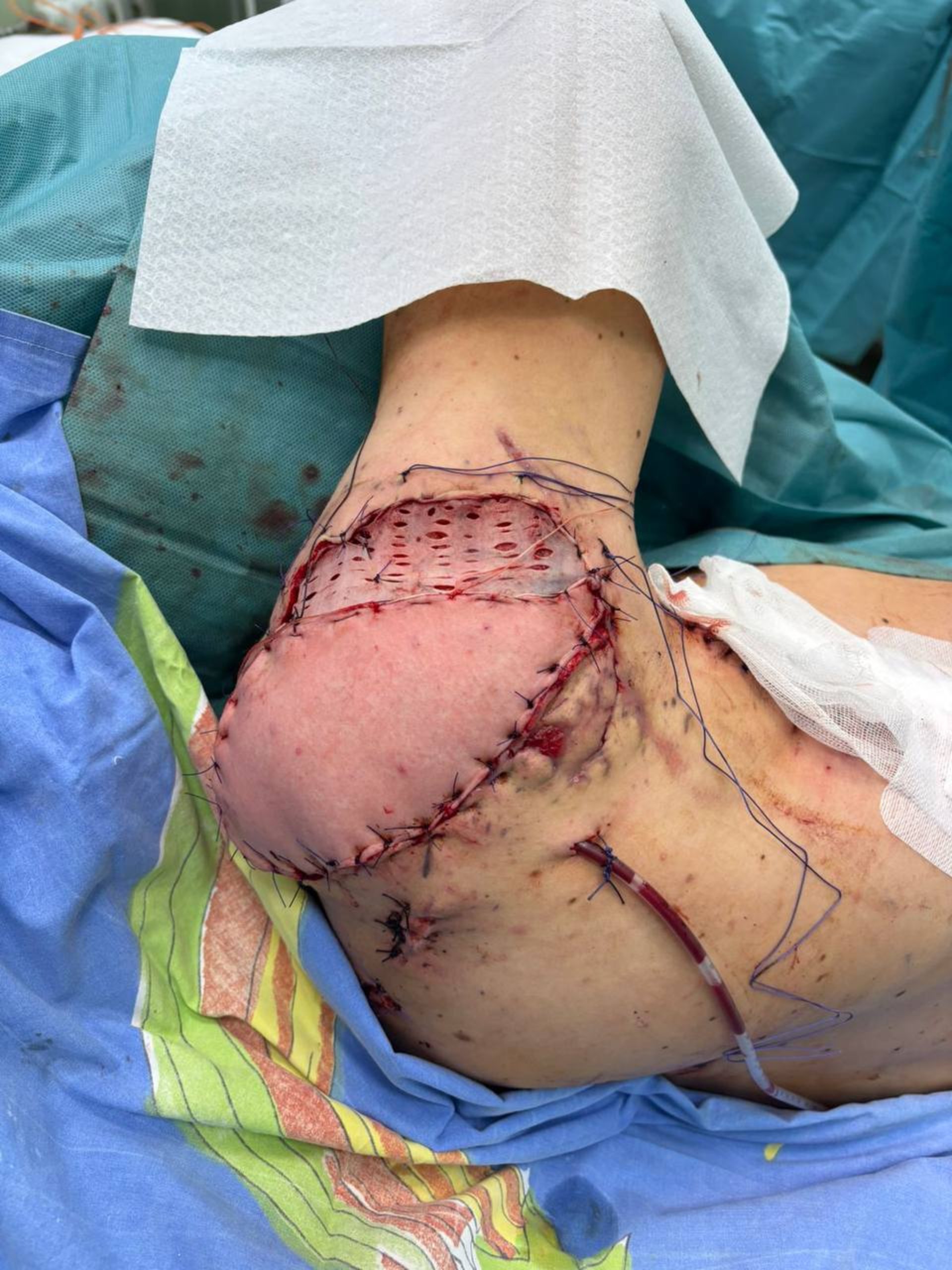 «Пацієнт мав інфекційне ускладнення, йому провели ультразвукову кавітацію та ВАК-терапію. Наступним етапом оперативне втручання — заміщення дефекту ротаційним торакодорсальним шкірно-м’язевим клаптем та пересадка шкіри», – розповів ортопед-травматолог Євген Петрус.