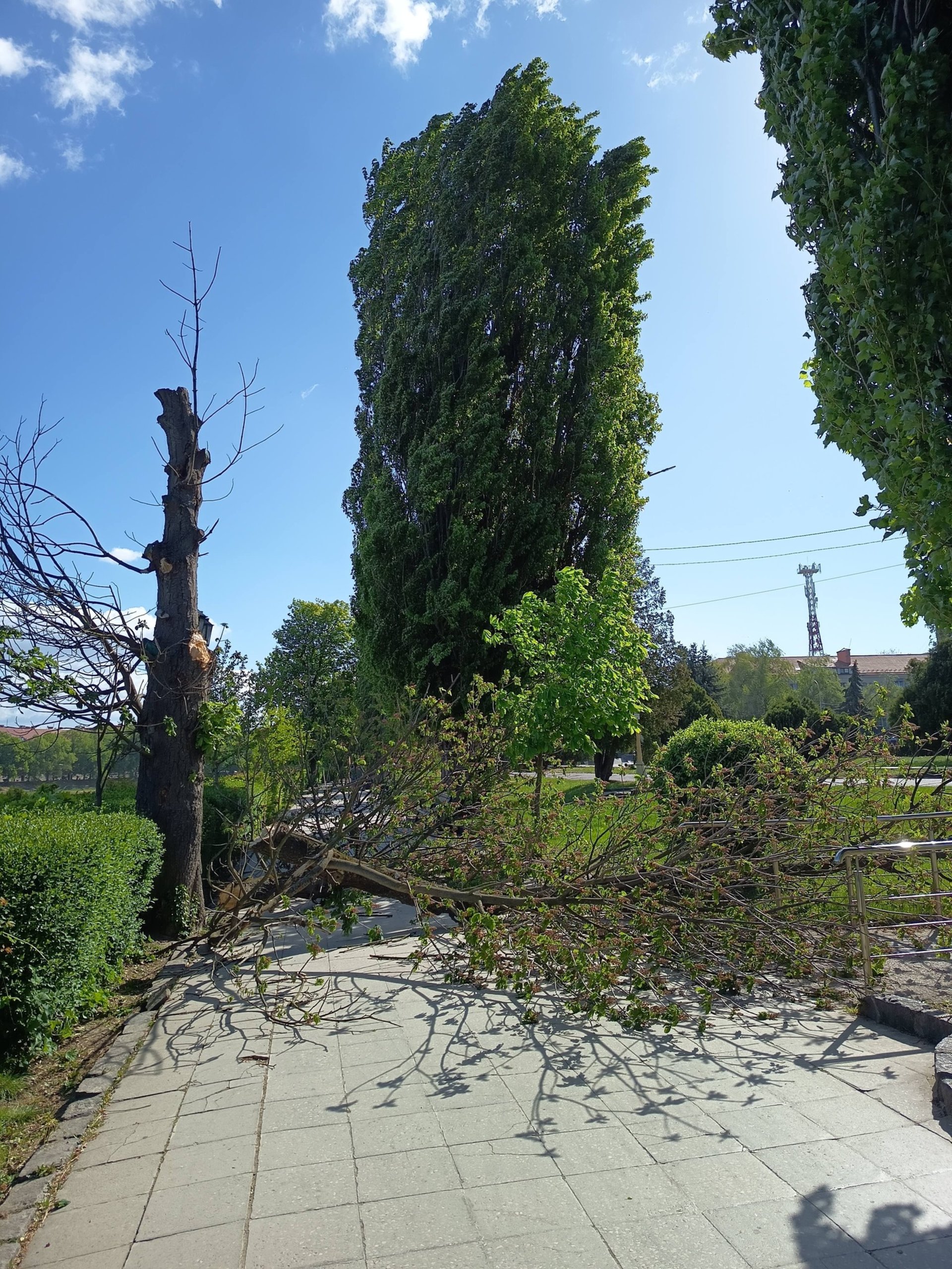 Наслідки негоди зафіксовані й в Ужгороді: на набережній поблизу мосту Масарика сильні пориви вітру повалили кілька дерев.