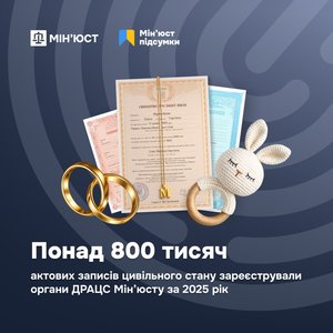 Органи ДРАЦС України протягом 2025 року зареєстрували 856 409 актових записів цивільного стану, зокрема народження, шлюби, розлучення та зміни імен.