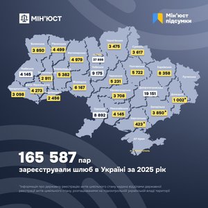 Щодо шлюбів, українці стали одружуватись частіше: у 2025 році зареєстровано 165 587 шлюбів, тоді як розлучились — 26 282 пари. Цифрові офіси ДРАЦС, відкриті у Києві, Дніпрі та Львові, вже провели понад 30 тисяч церемоній одруження, що складає приблизно кожен п’ятий шлюб в Україні.