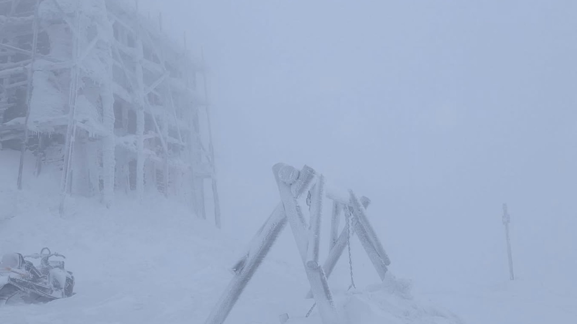 Сьогодні зранку на горі Піп Іван Чорногірський вирує справжня зима. Вершина вкрита снігом, а температура повітря опустилася до 10° морозу.