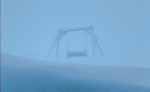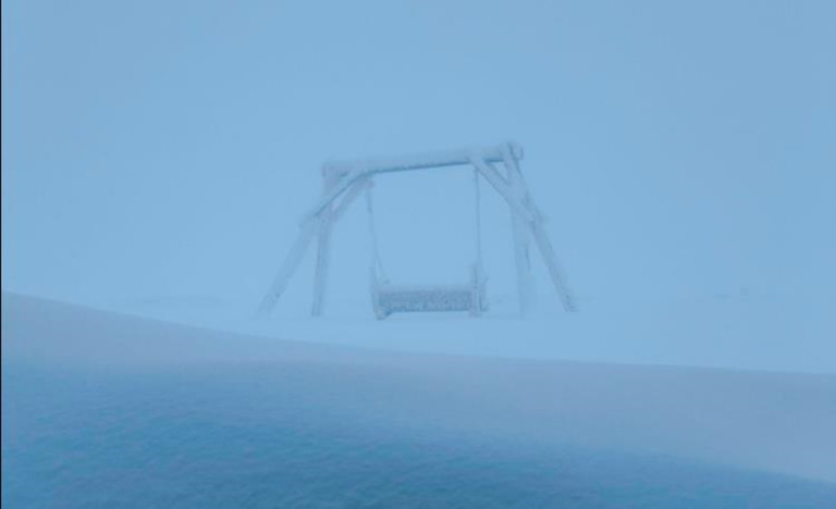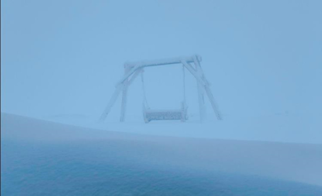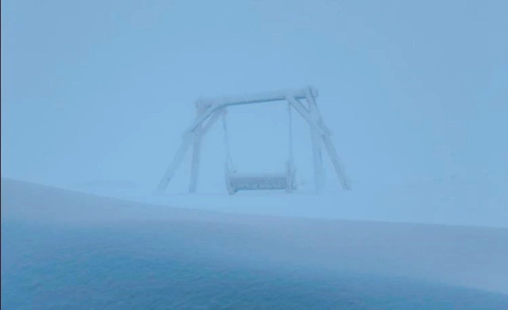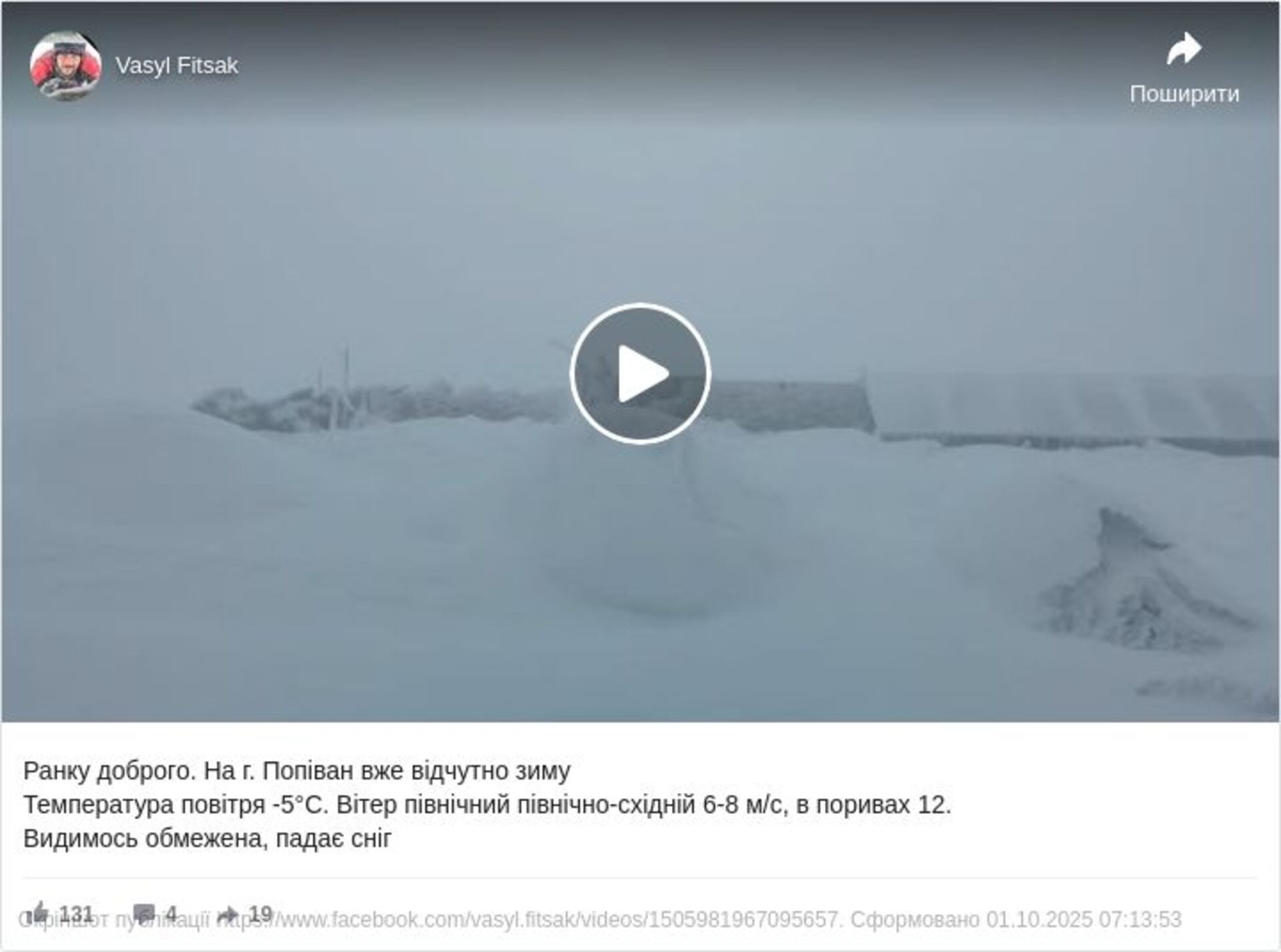На вершині гори Піп Іван у Карпатах уже відчутно зиму. Температура повітря опустилася до -5°С, дме північний та північно-східний вітер 6–8 м/с, у поривах — до 12 м/с. Видимість обмежена, йде сніг, а замети подекуди сягають пів метра.